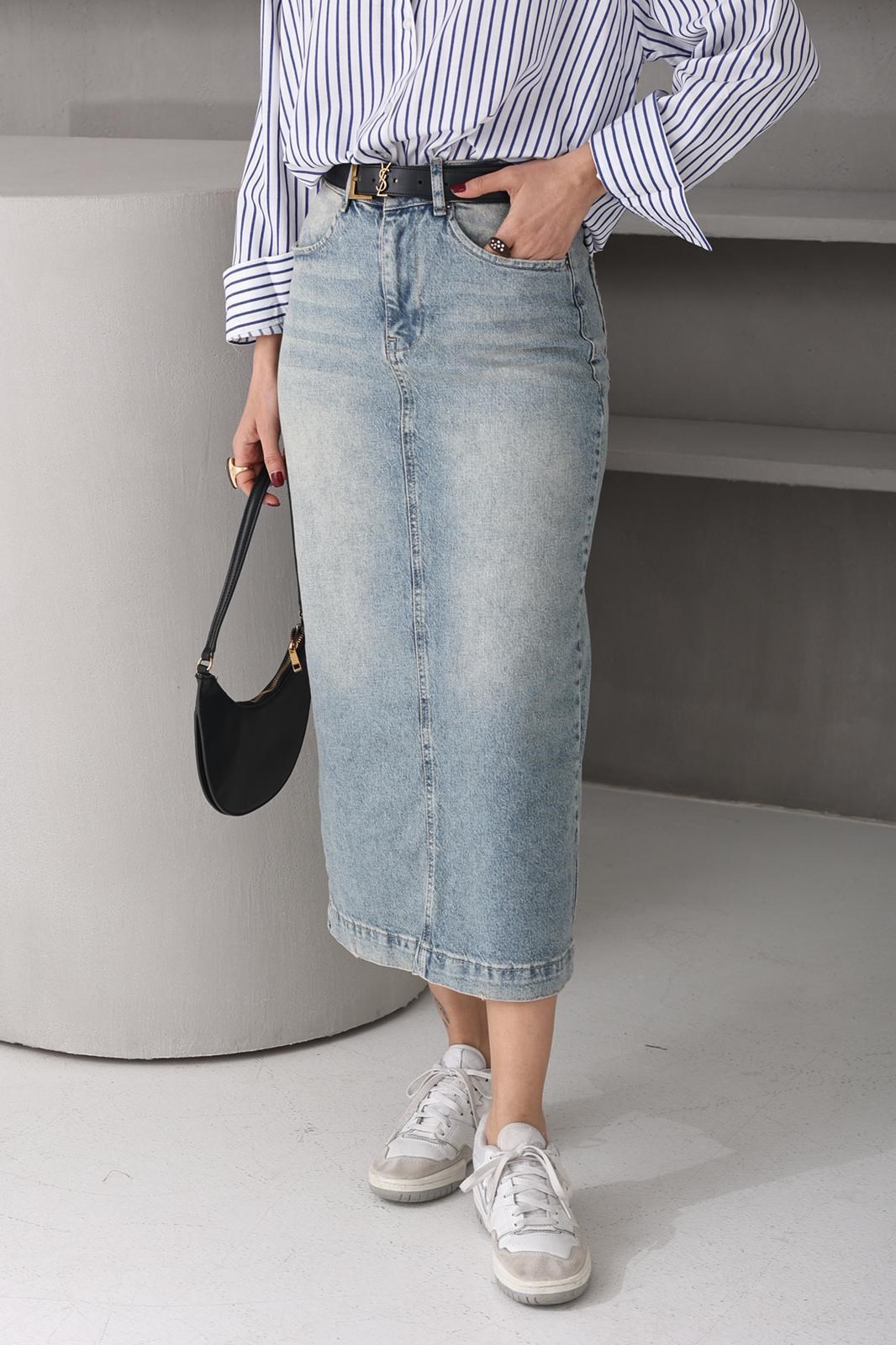 Açık Mavi Gölgeli Denim Etek (4730) (ETK000617)