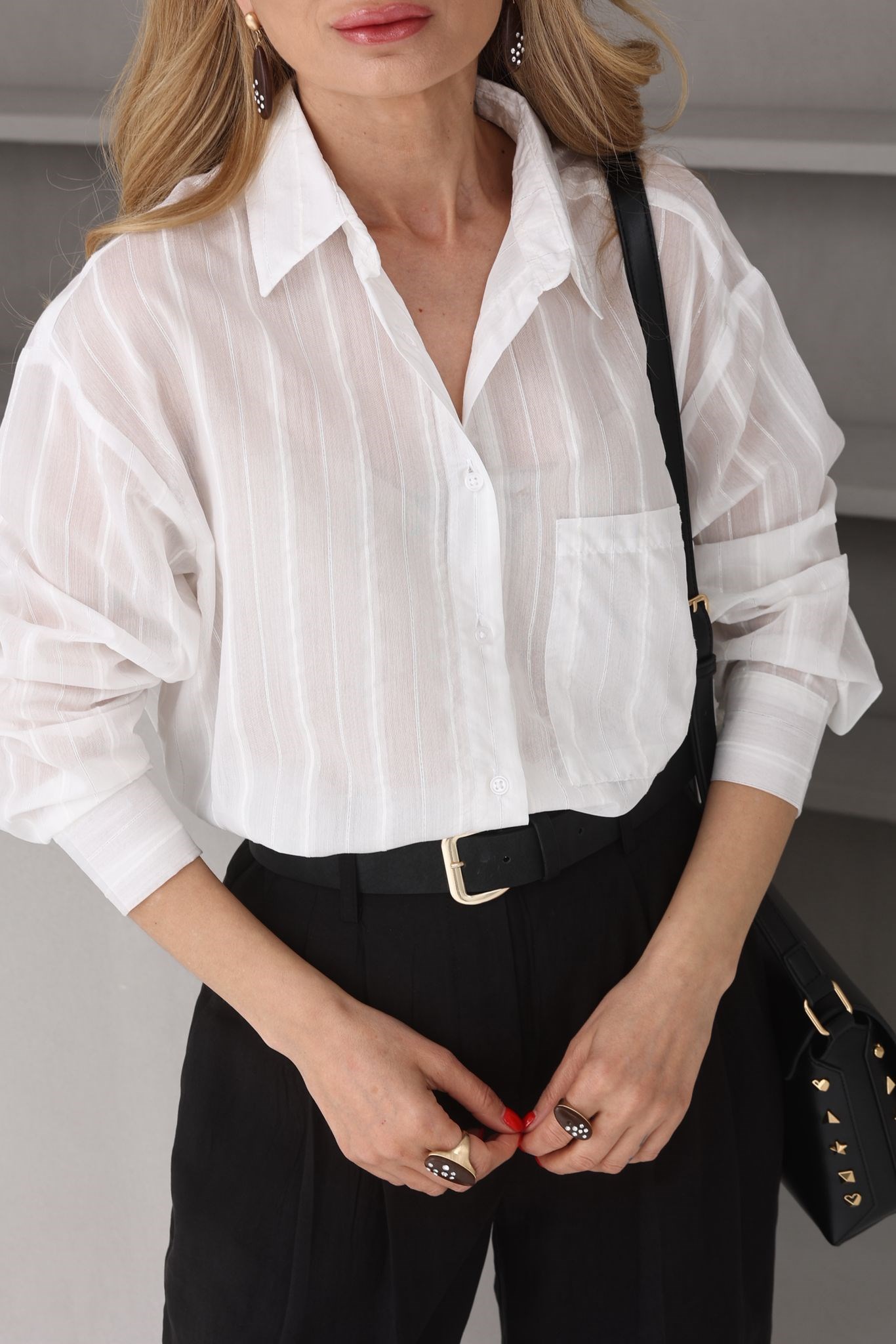 Beyaz Sim Çizgili Gömlek (GML000732)