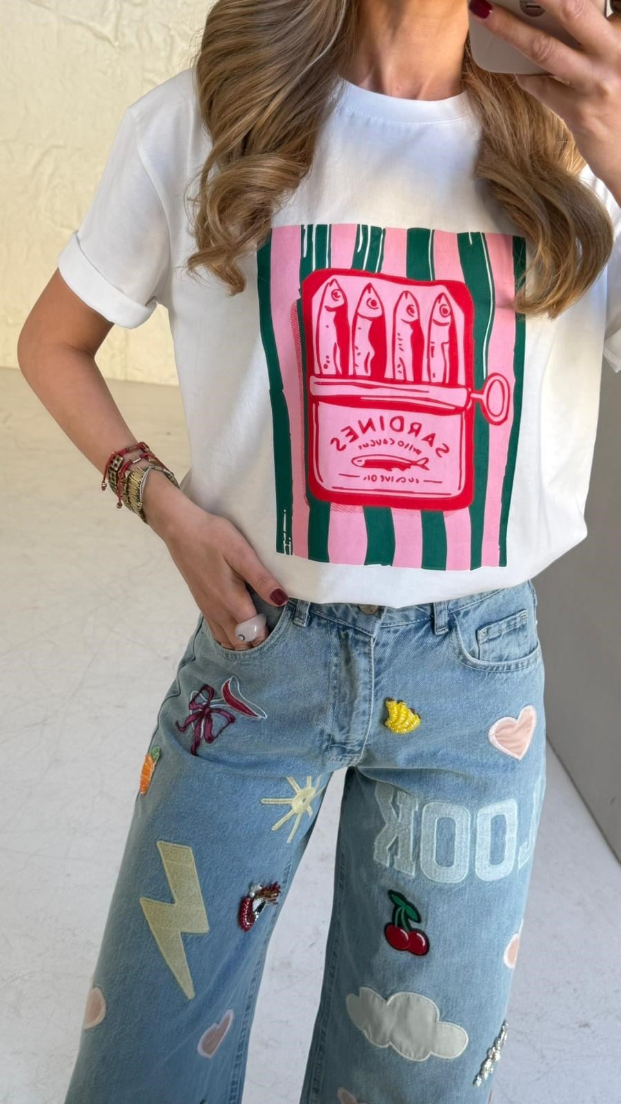 Bisiklet Yaka Balık Baskılı Tshirt (TSH000750)