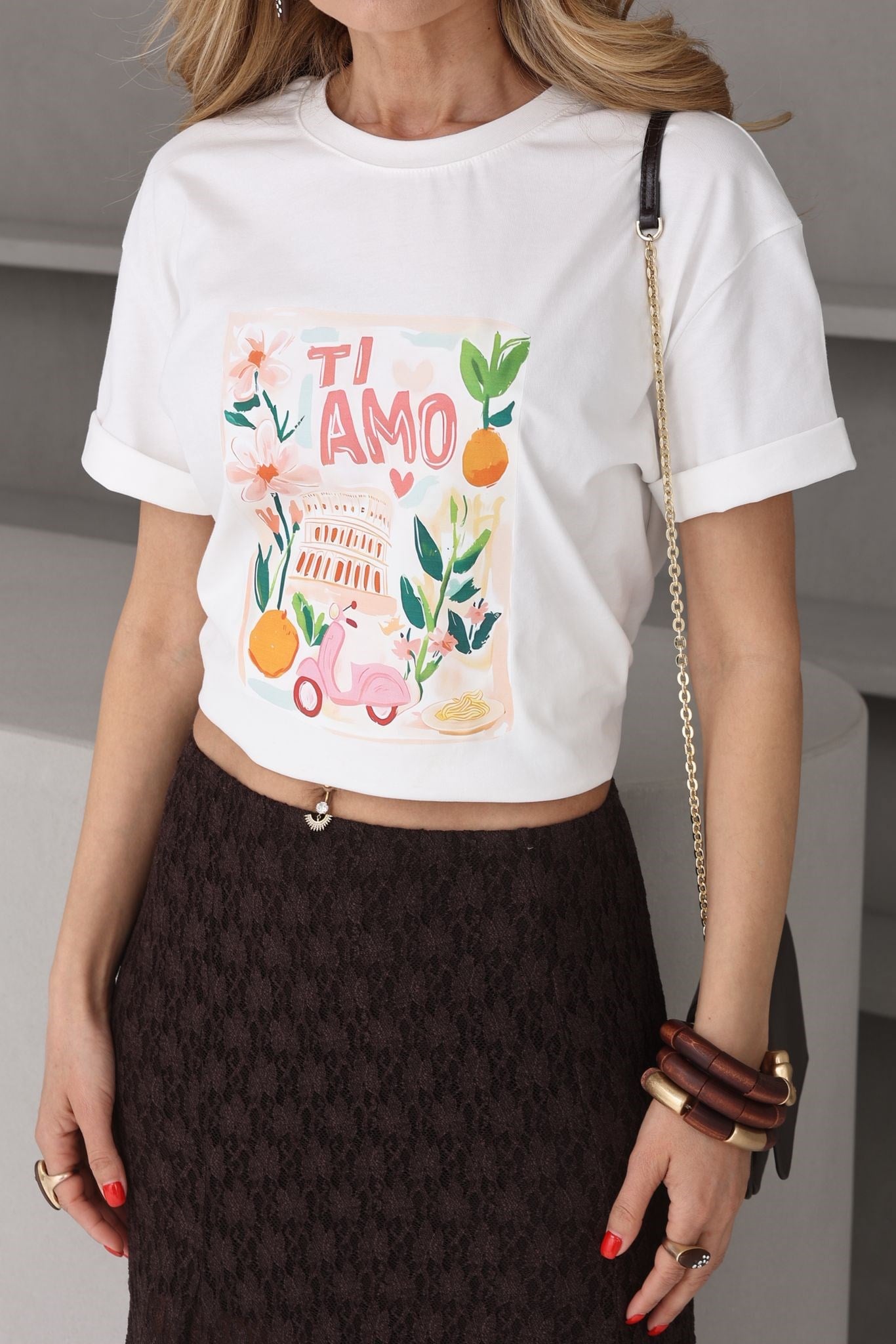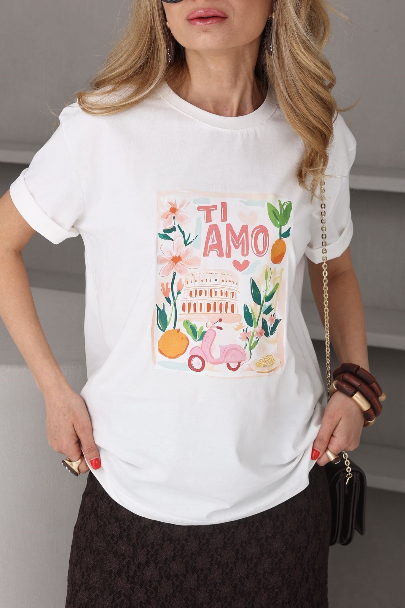Bisiklet Yaka Ti Amo Baskılı Tshirt (TSH000748)