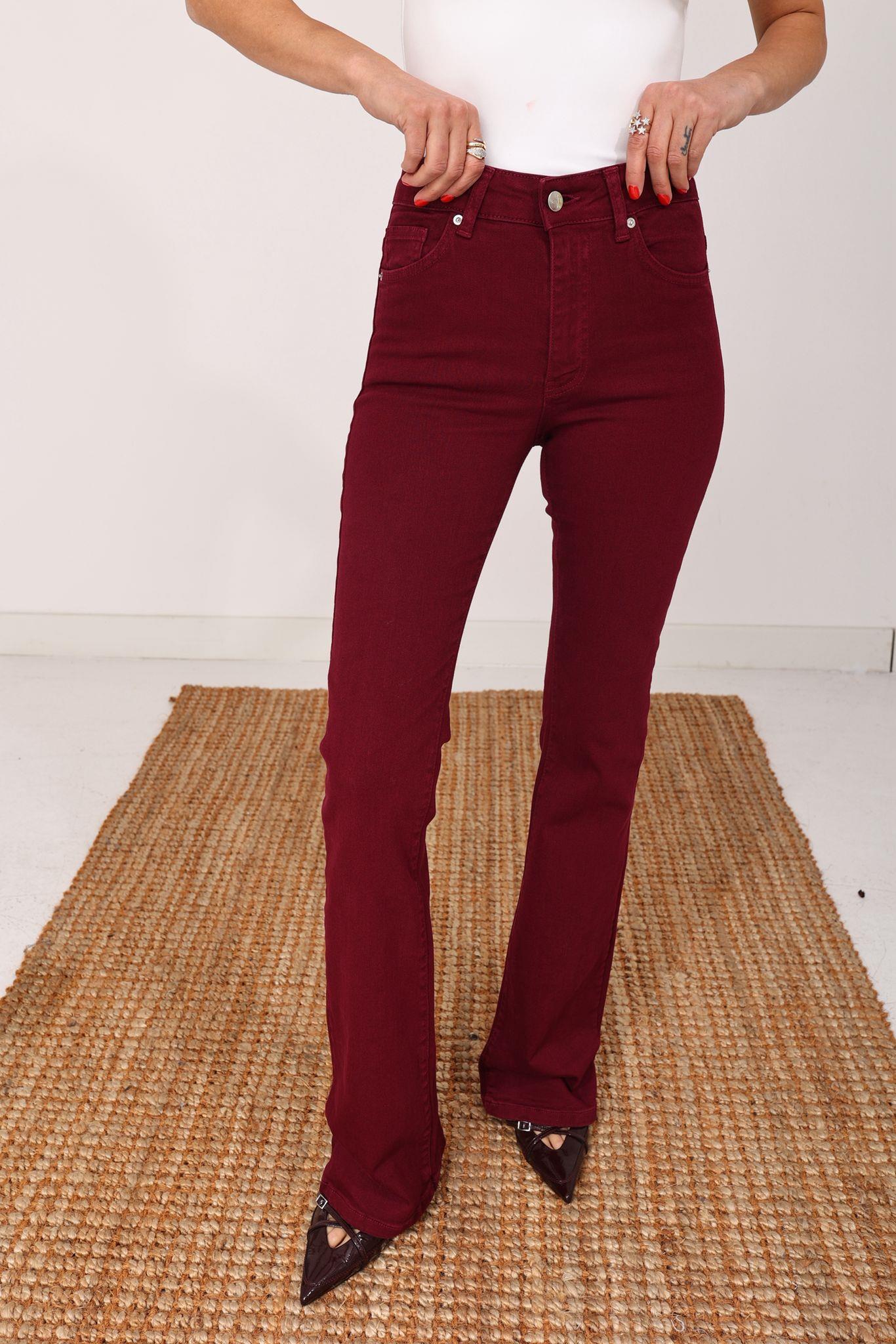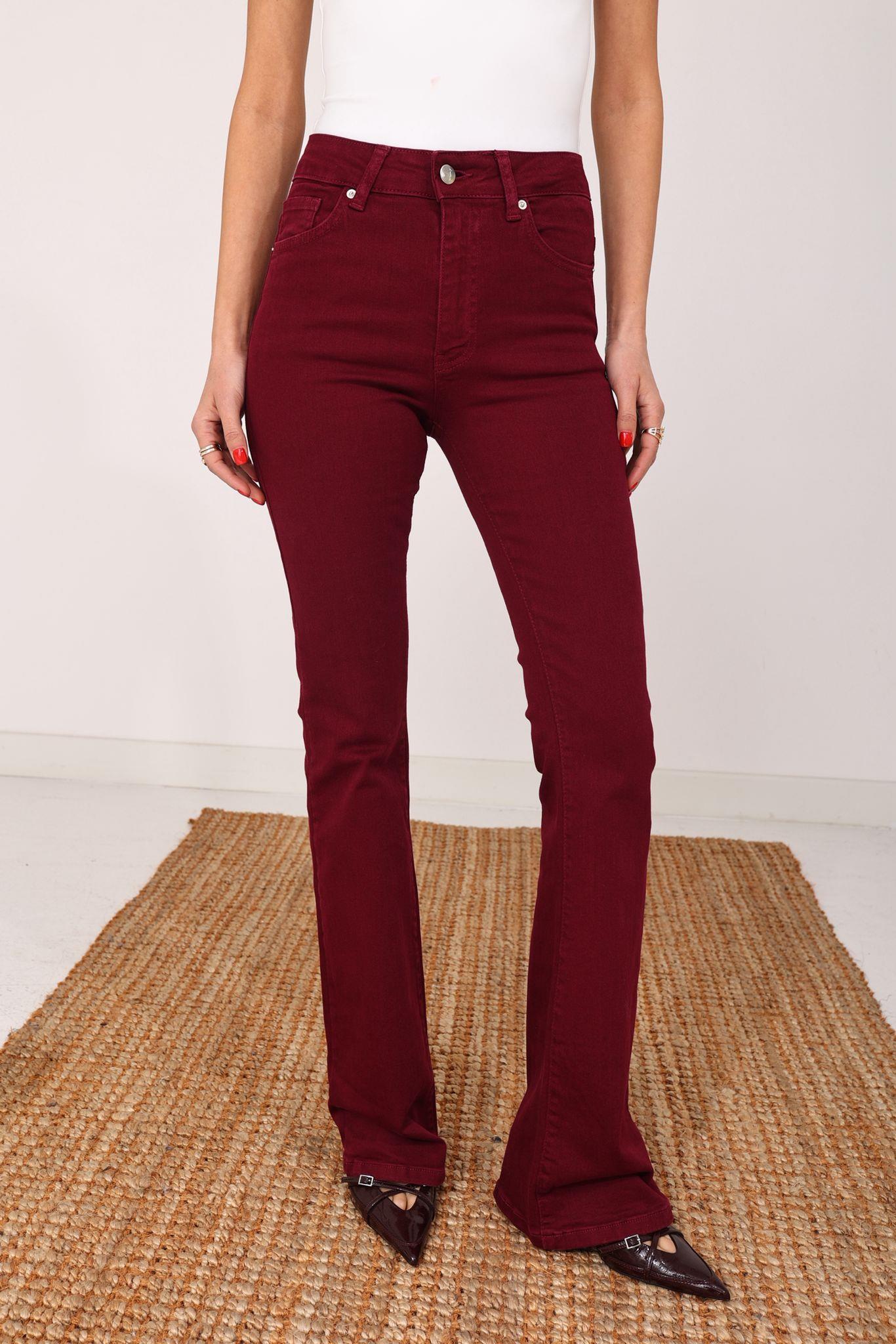 Bordo Likralı İspanyol Paça Jean(867-82) (JEN000541)