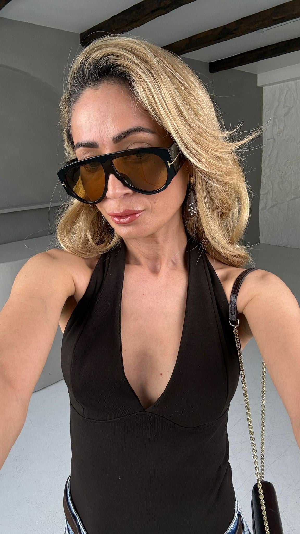Boyundan Geçmeli Kahve Penye Bluz (BLZ000355)