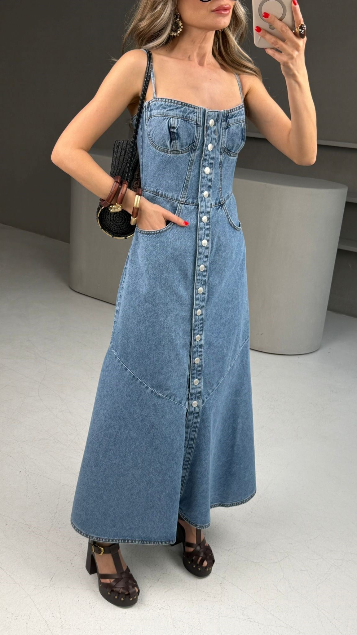 Buz Mavi Askılı Denim Elbise (ELB001306)