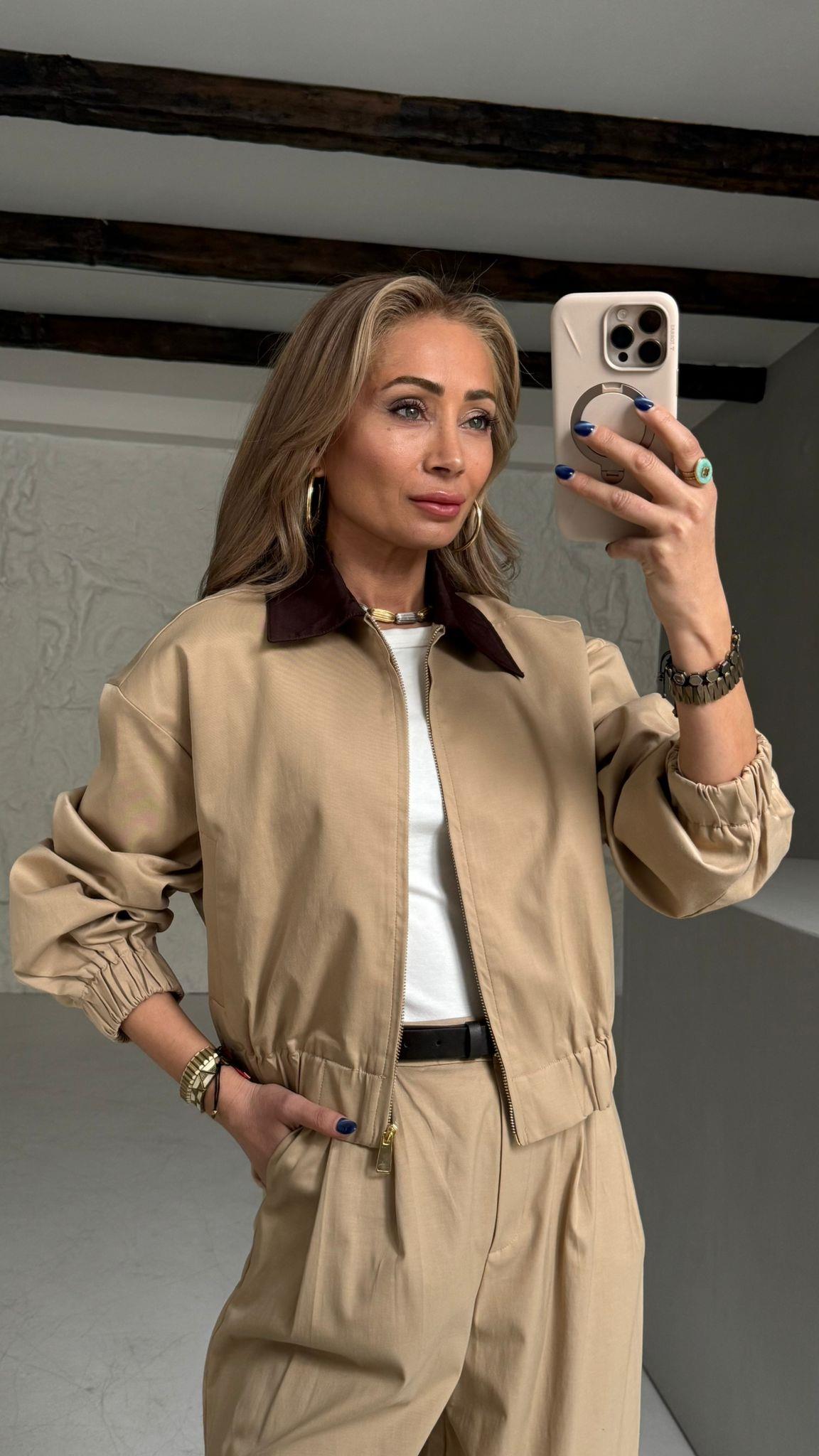 Camel Gabardin Bomber Ceket (CKT000611)