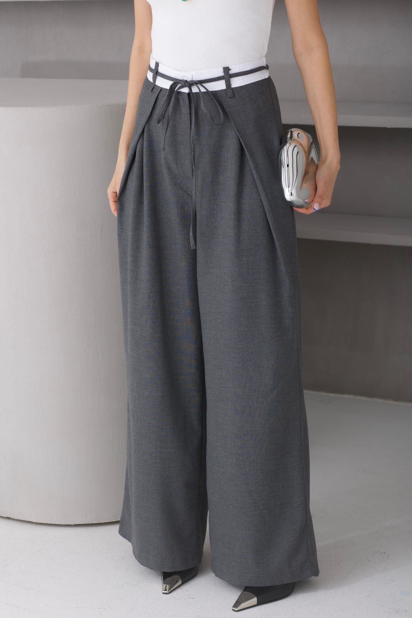 Çift Kemer Pileli Füme Pantolon (PNT001024)