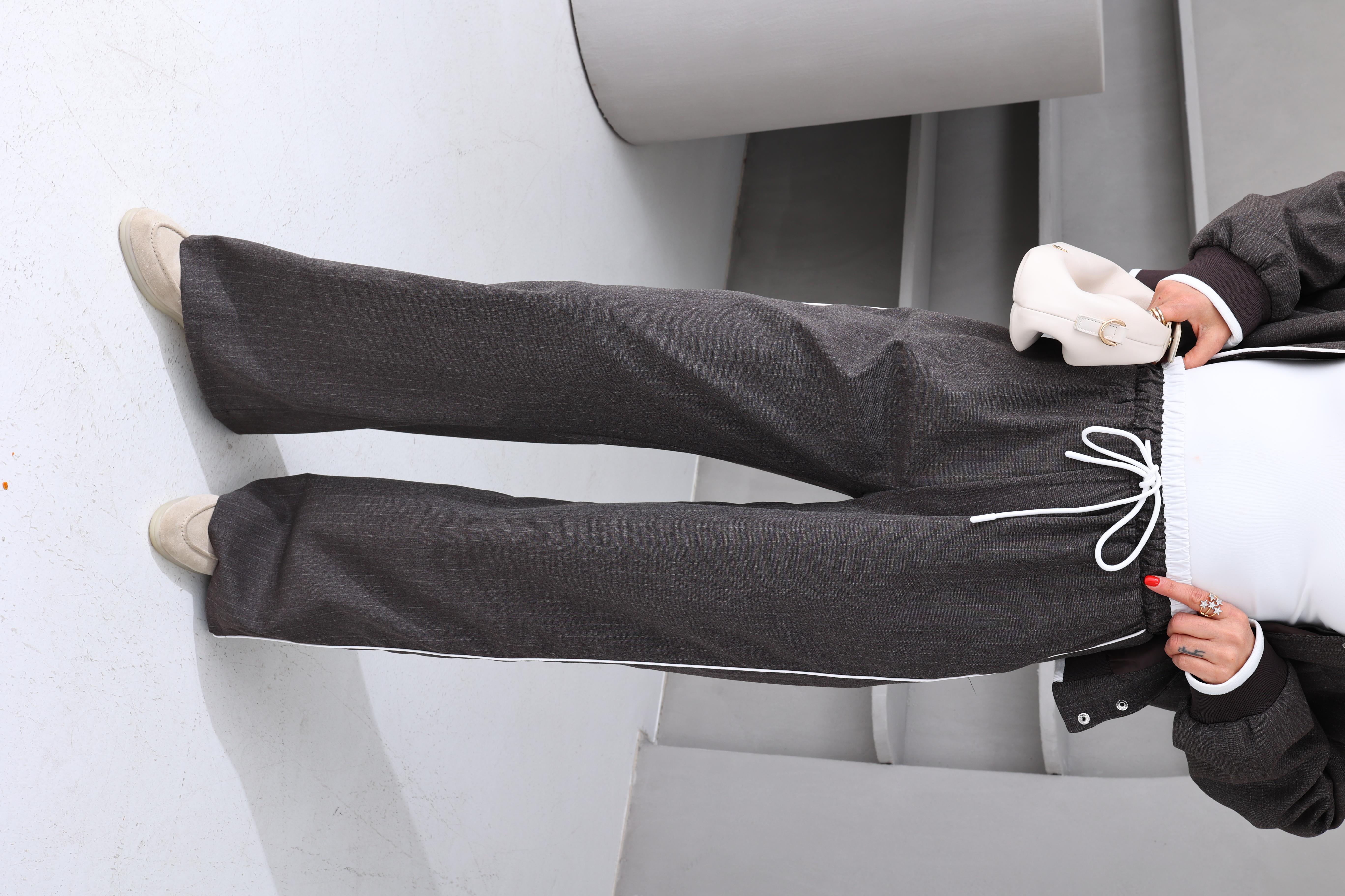 Çift Kemer Şeritli Kahve Çizgili Pantolon (PNT001012)