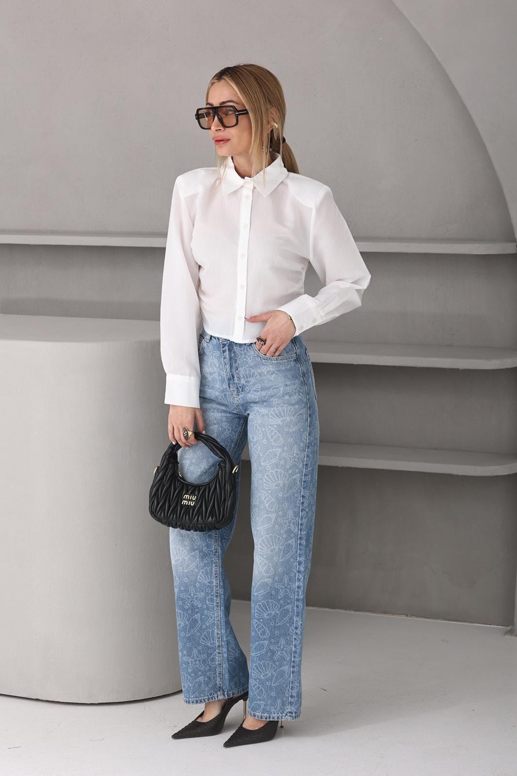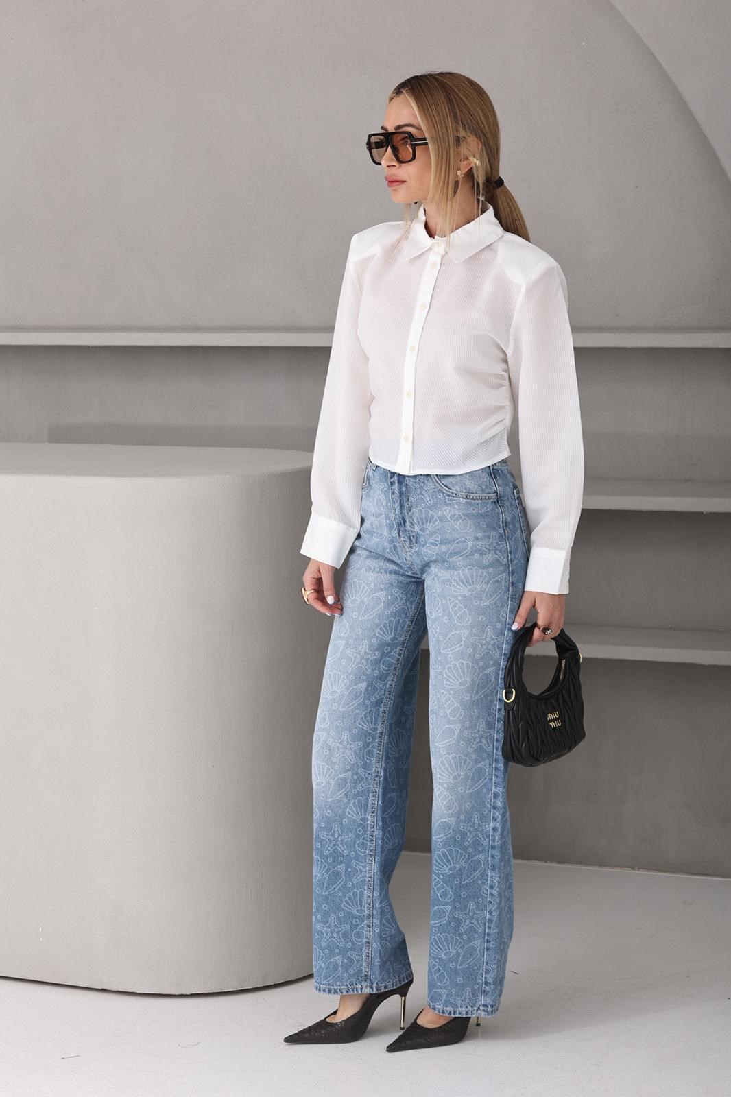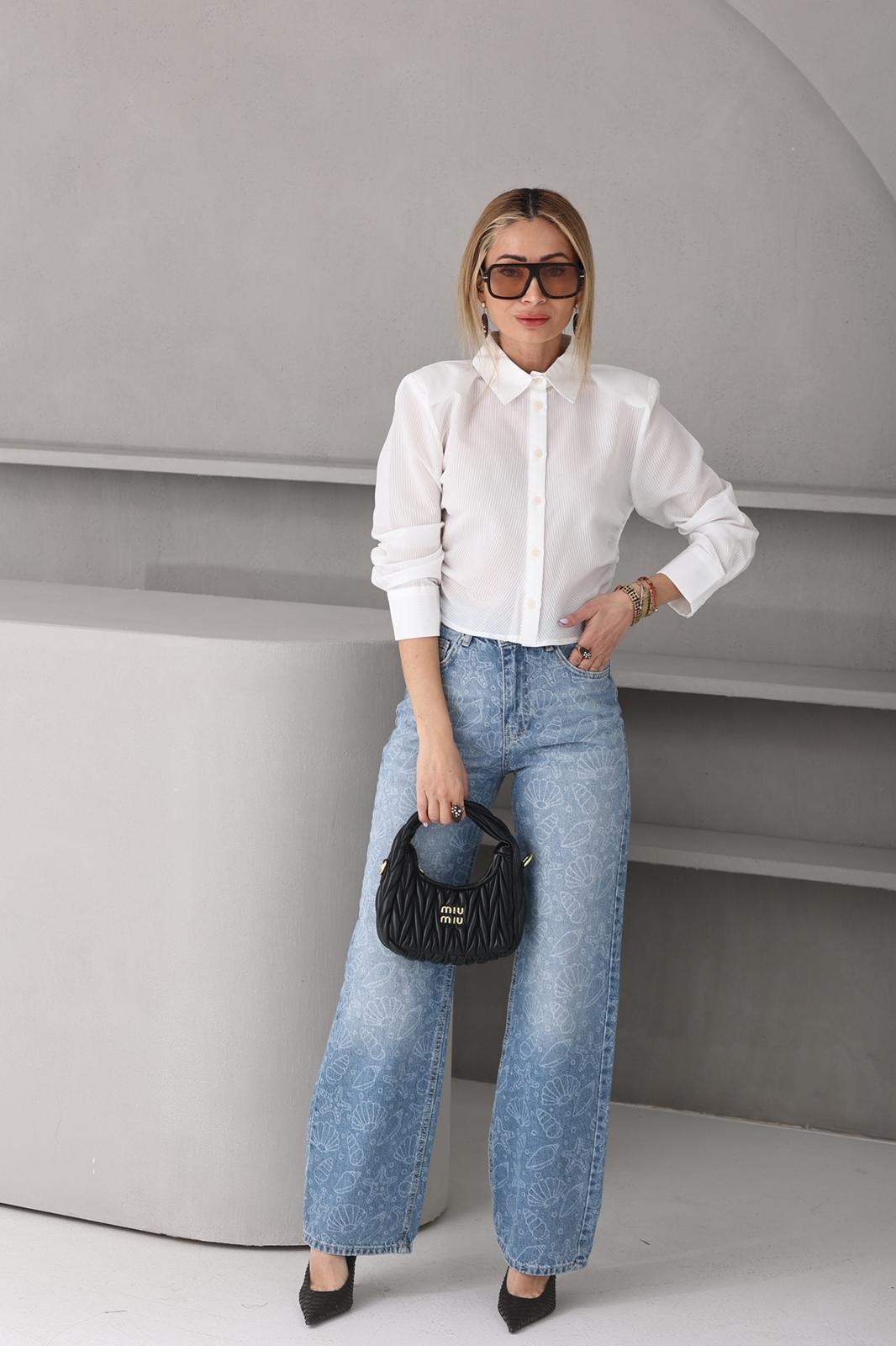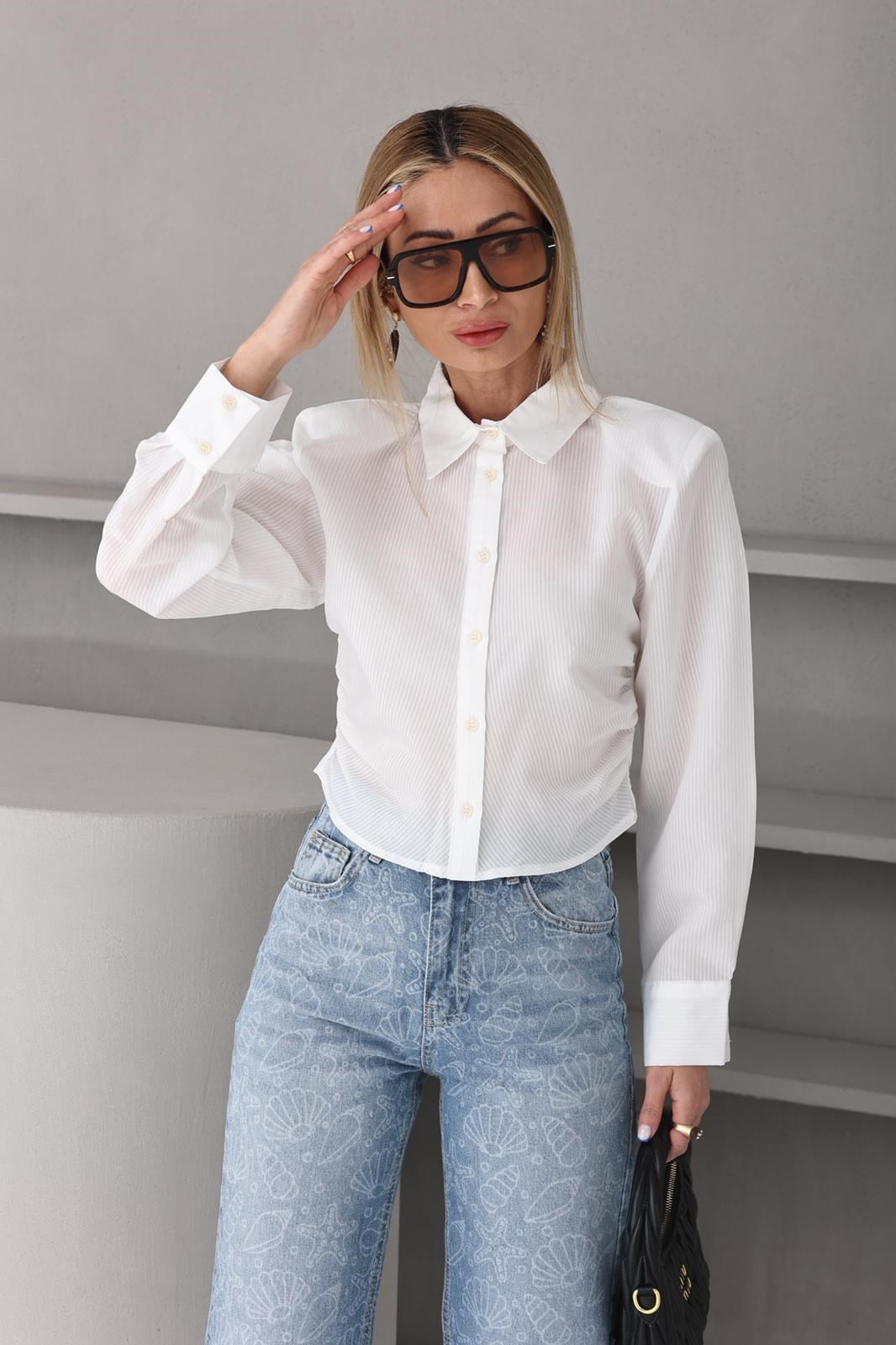 Ekru Çizgili Vatkalı Crop Gömlek (GML000718)