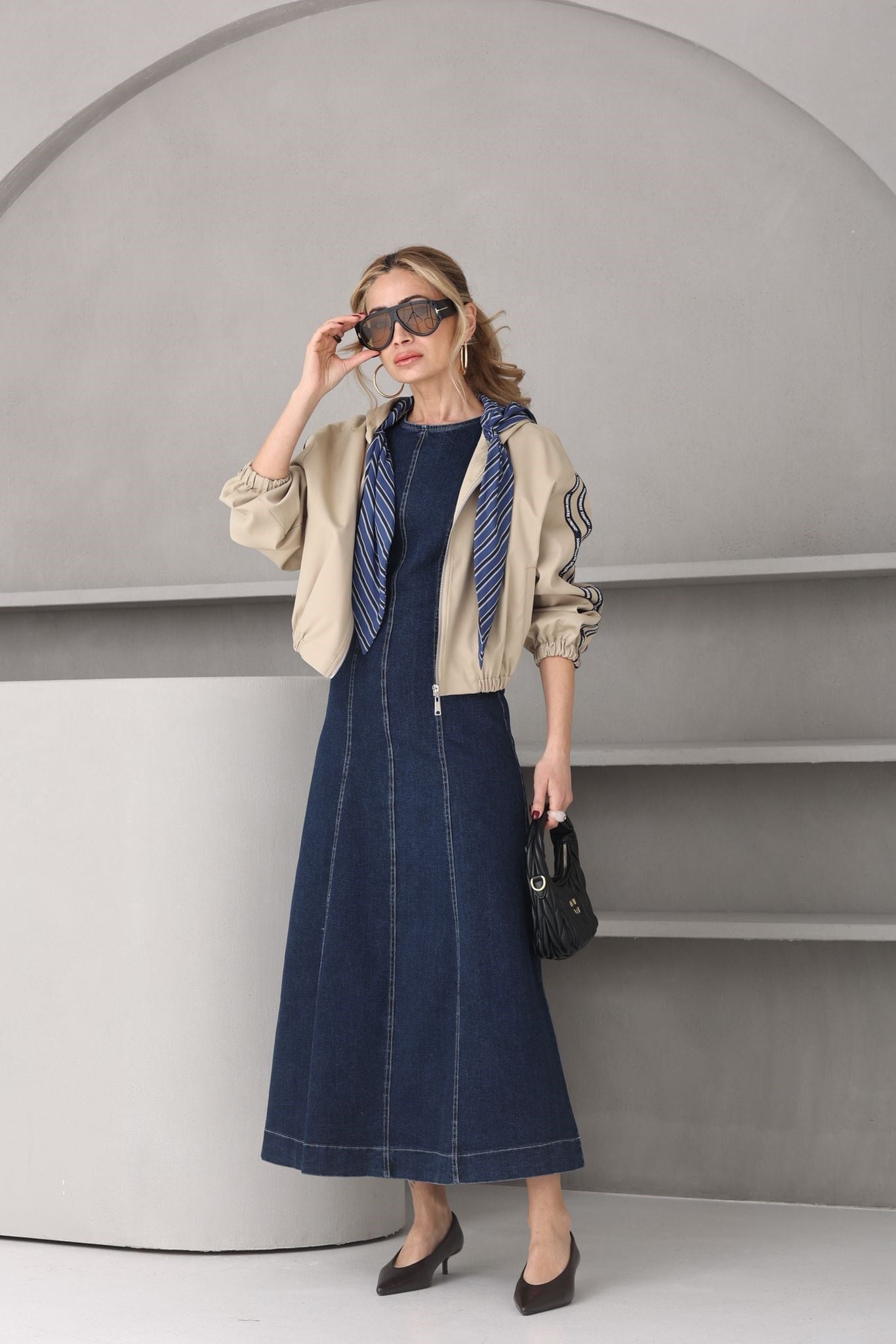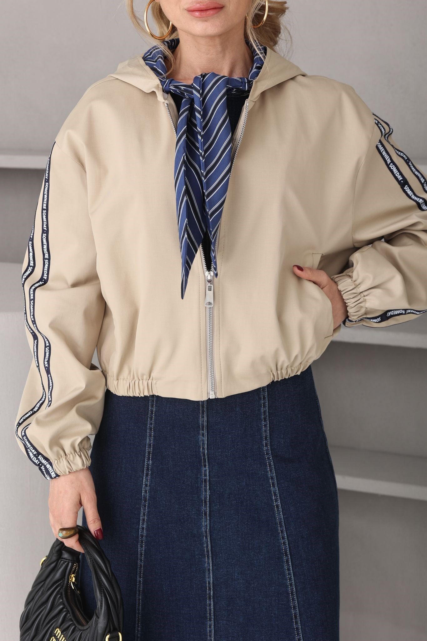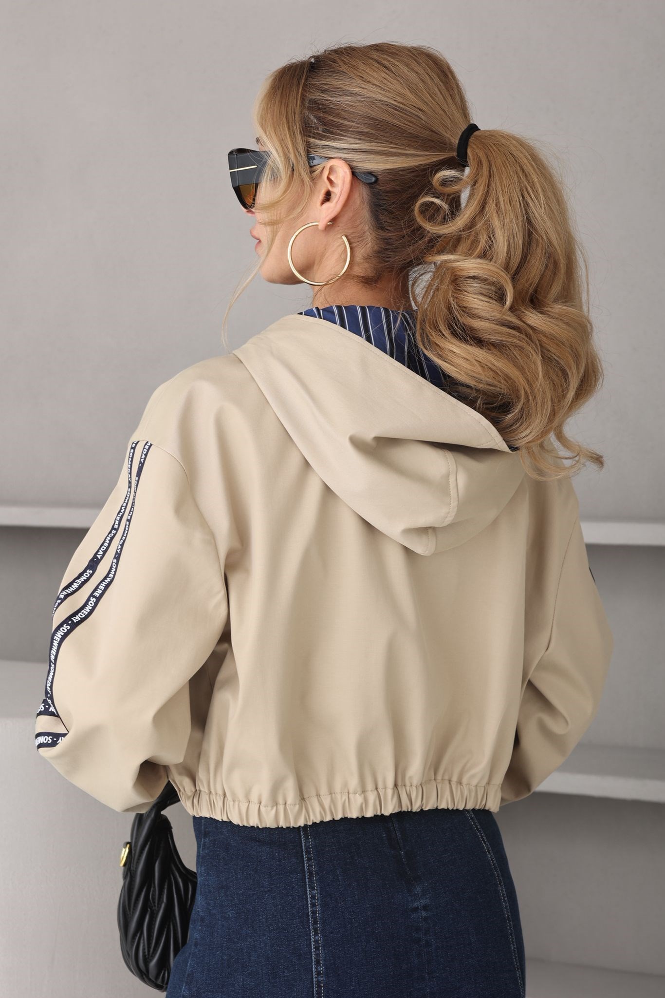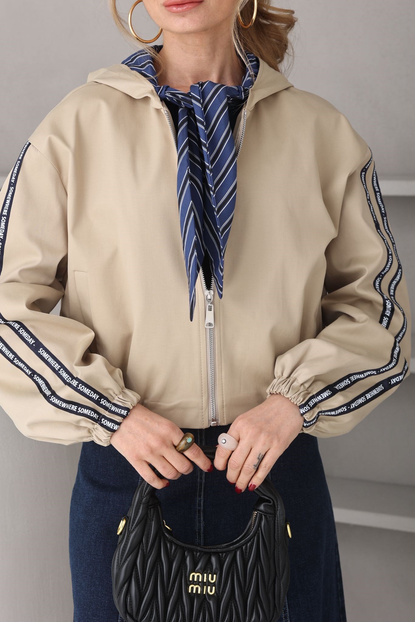 Fular Detay Kapişonlu Kısa Trenç (TRC000124)