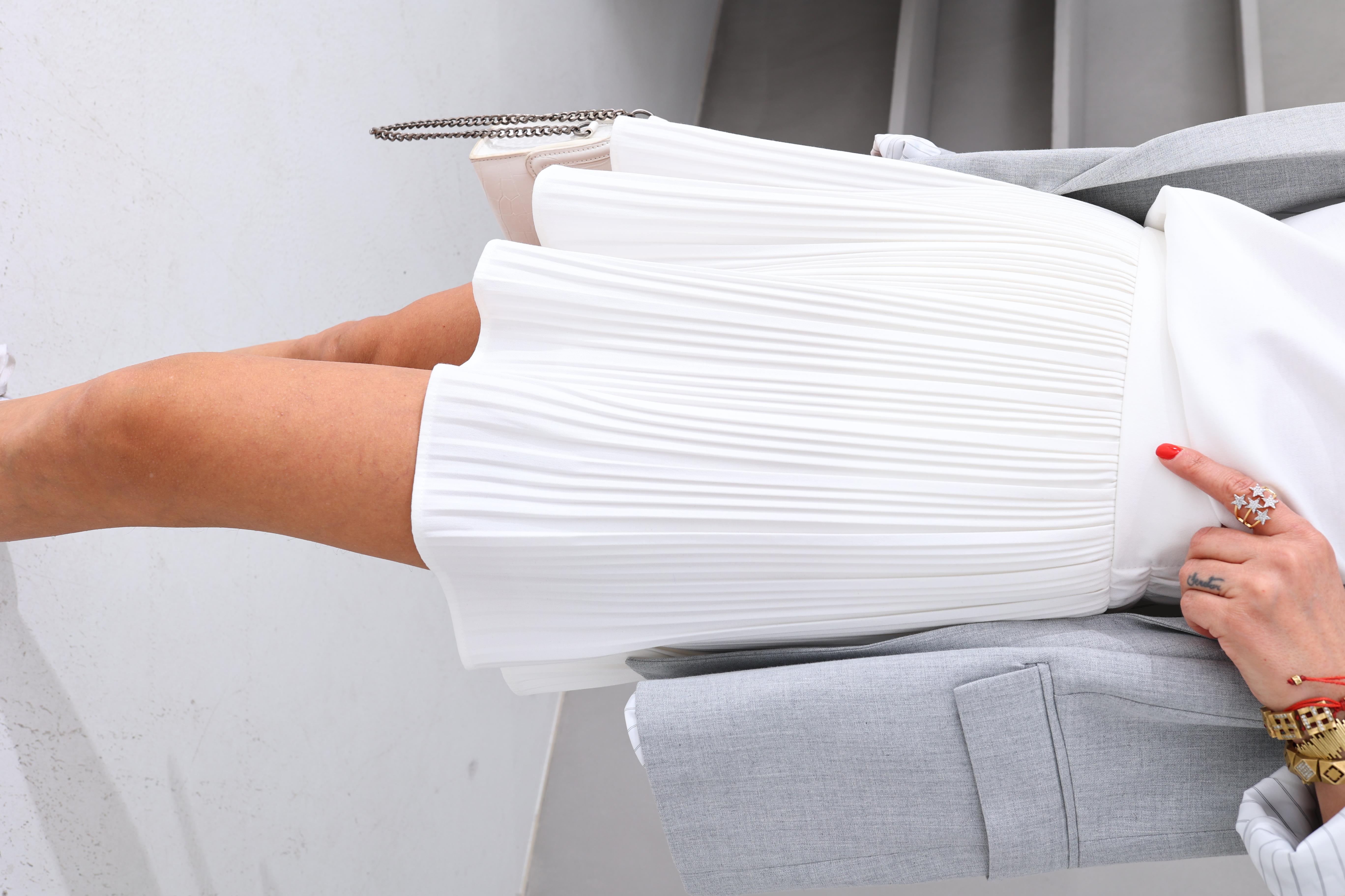 İnce Pileli Beyaz Mini Etek (ETK000593)