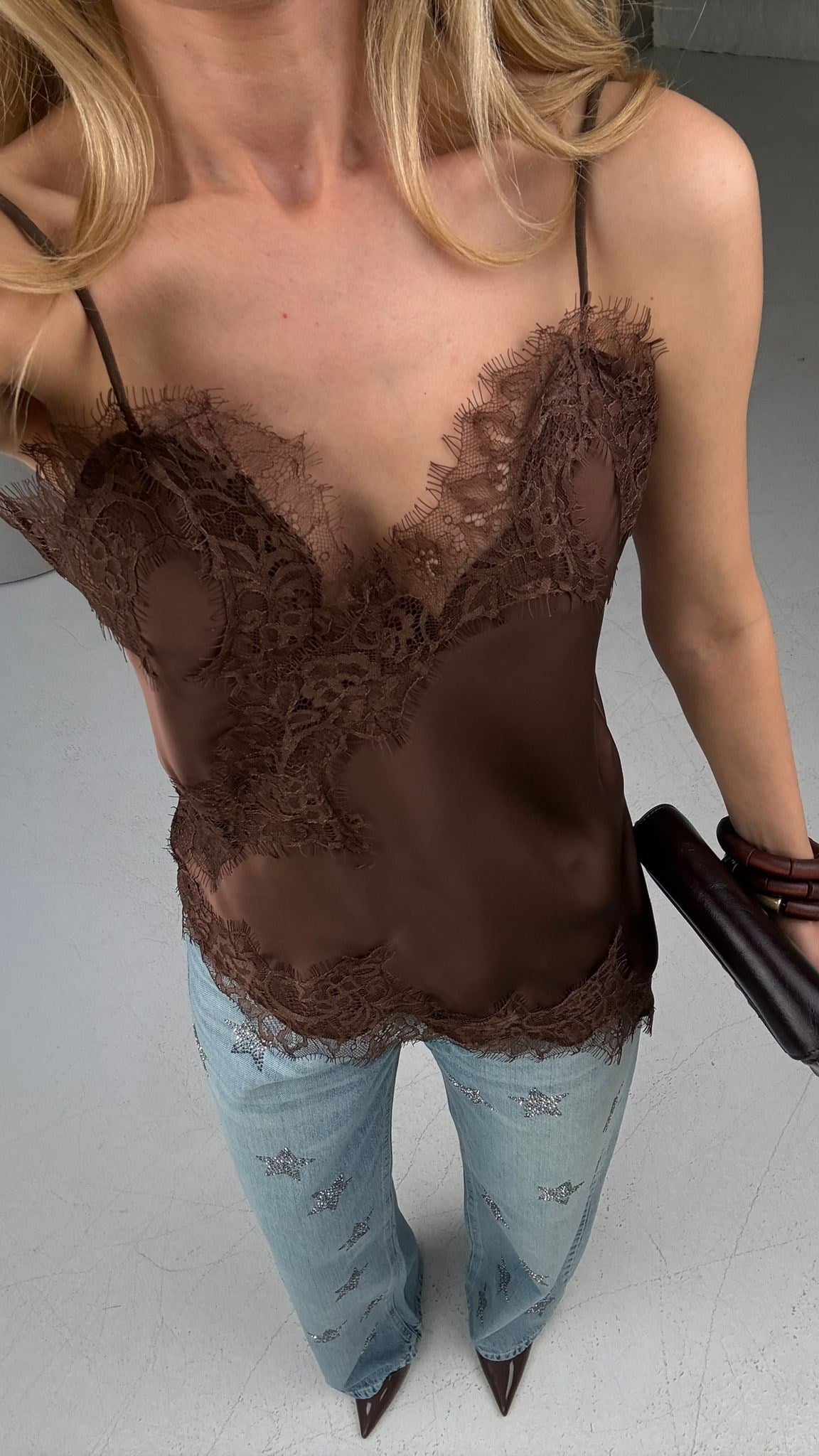 Kahve Dantelli Saten Bluz (BLZ000397)