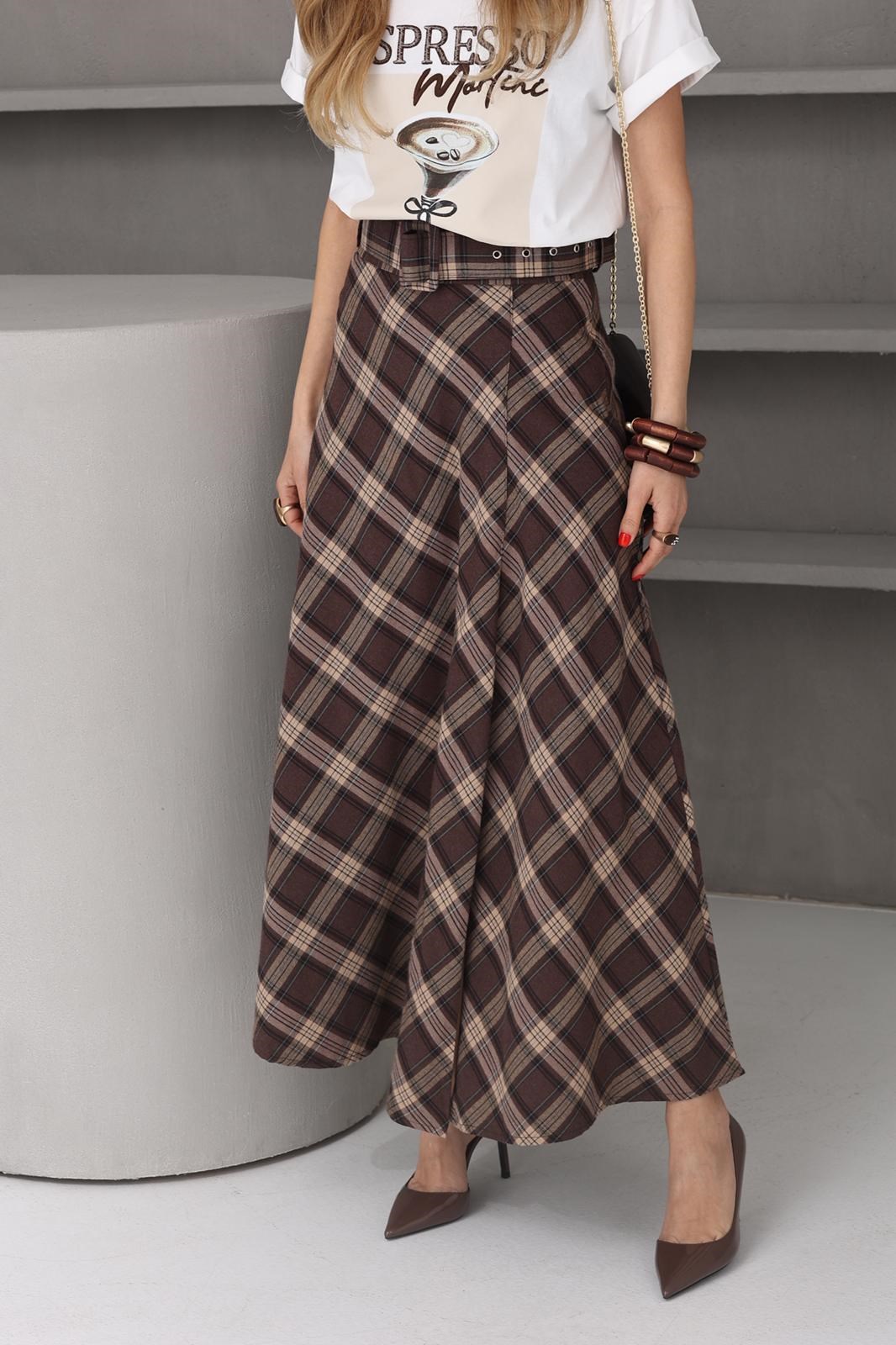 Kahve Ekose Kemerli Etek (ETK000603)