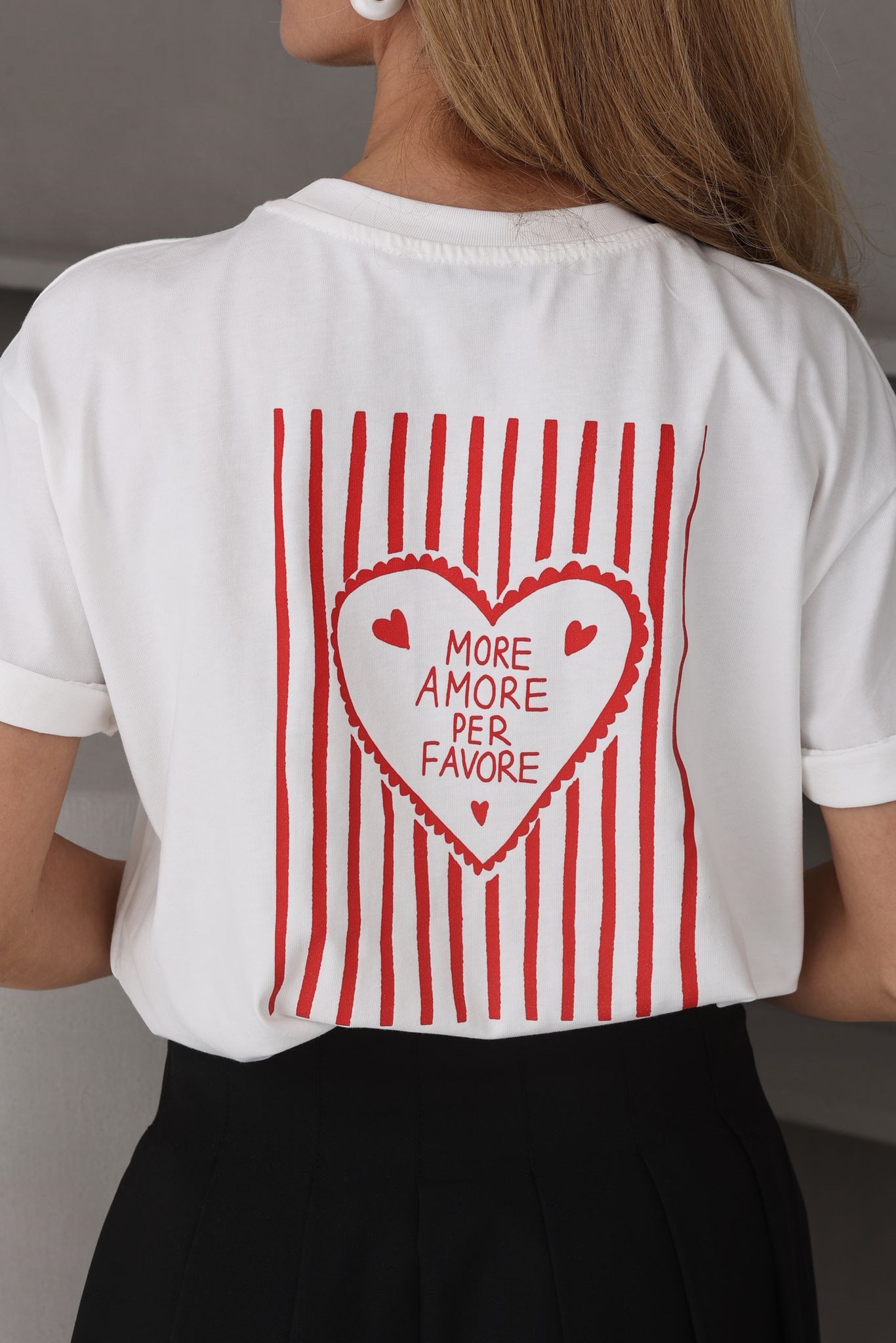 Kalp Baskılı Ekru Basic Tshirt (TSH000770)