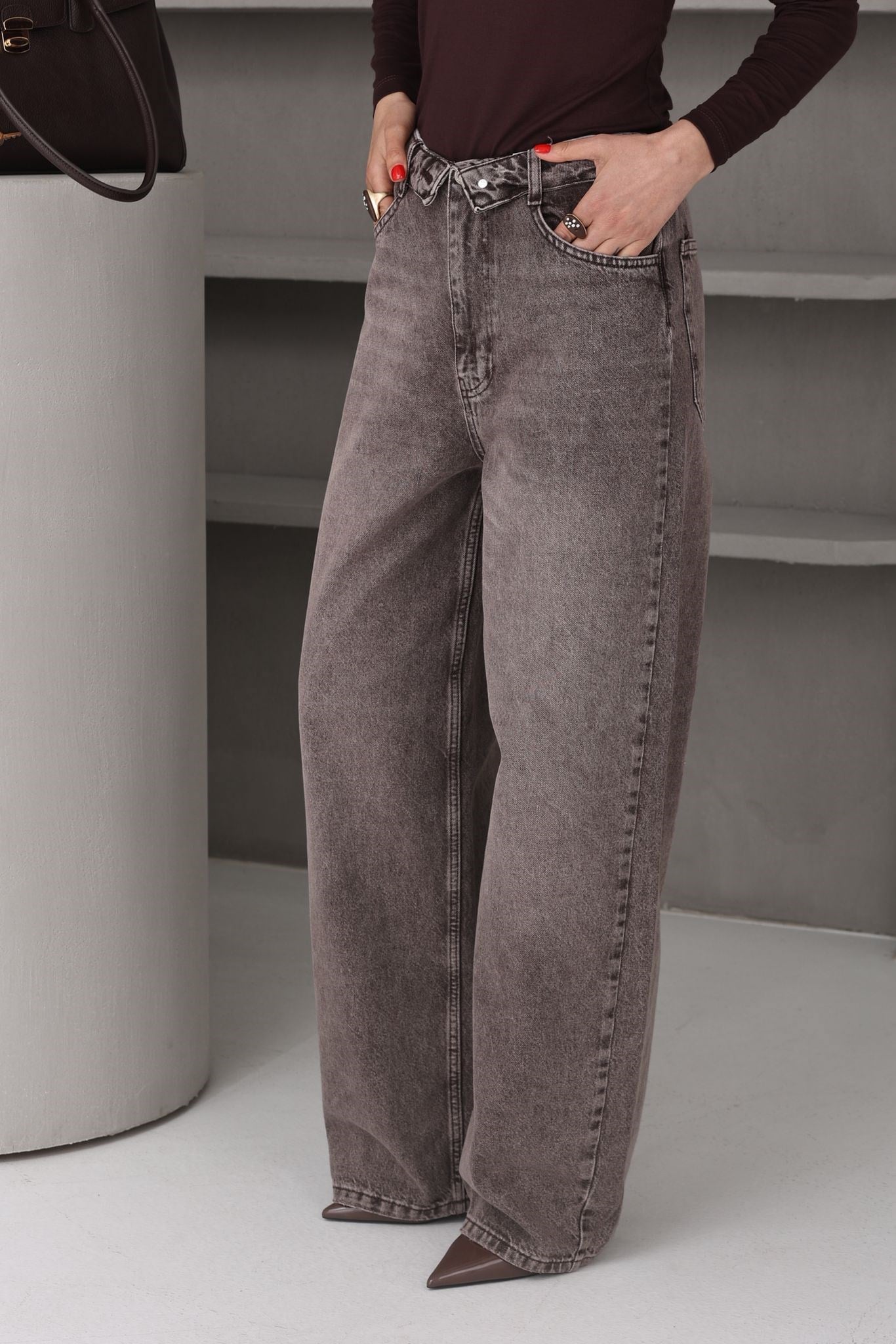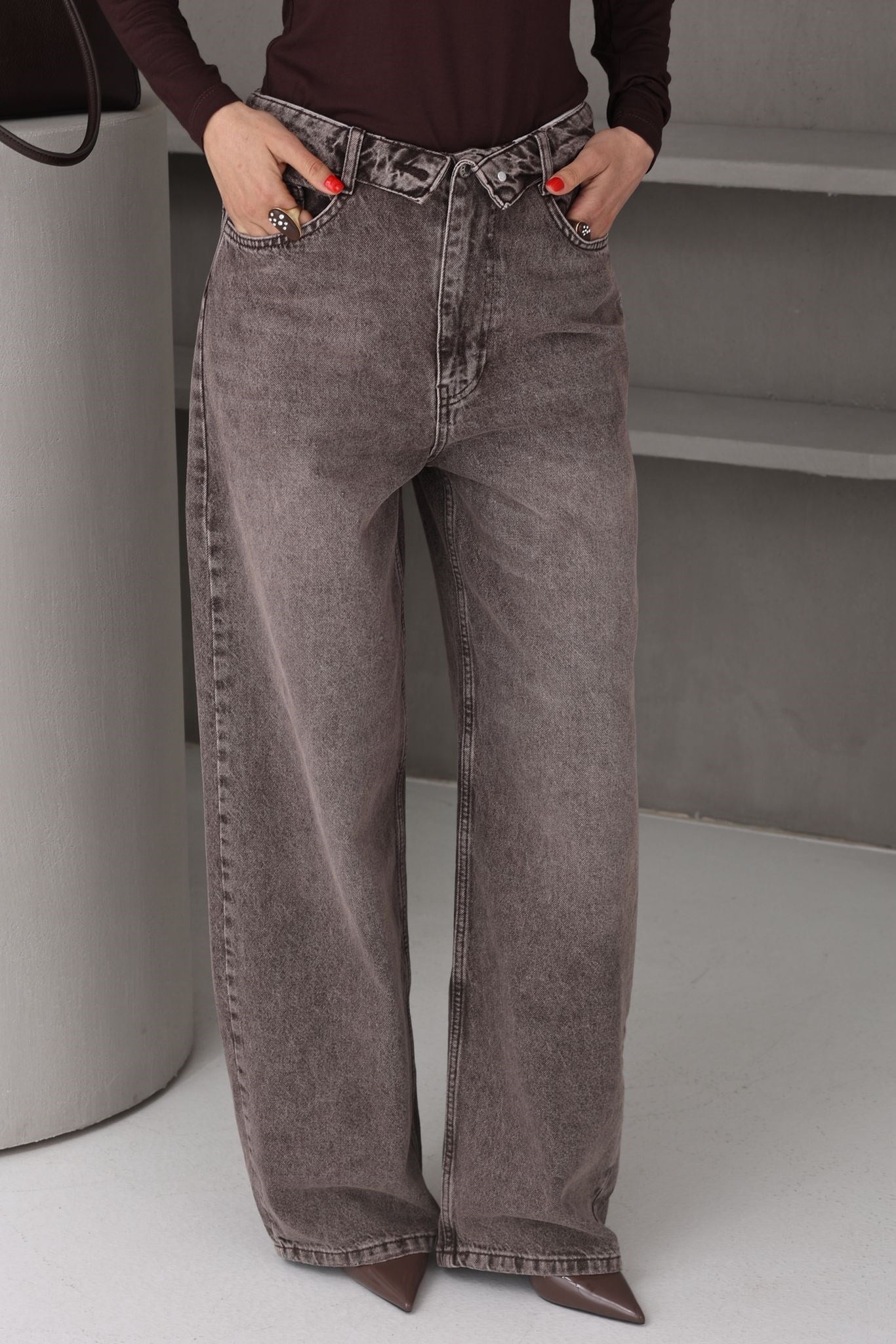 Kemer Detay Kahve Geniş Paça Jean(4545-16) (JEN000562)