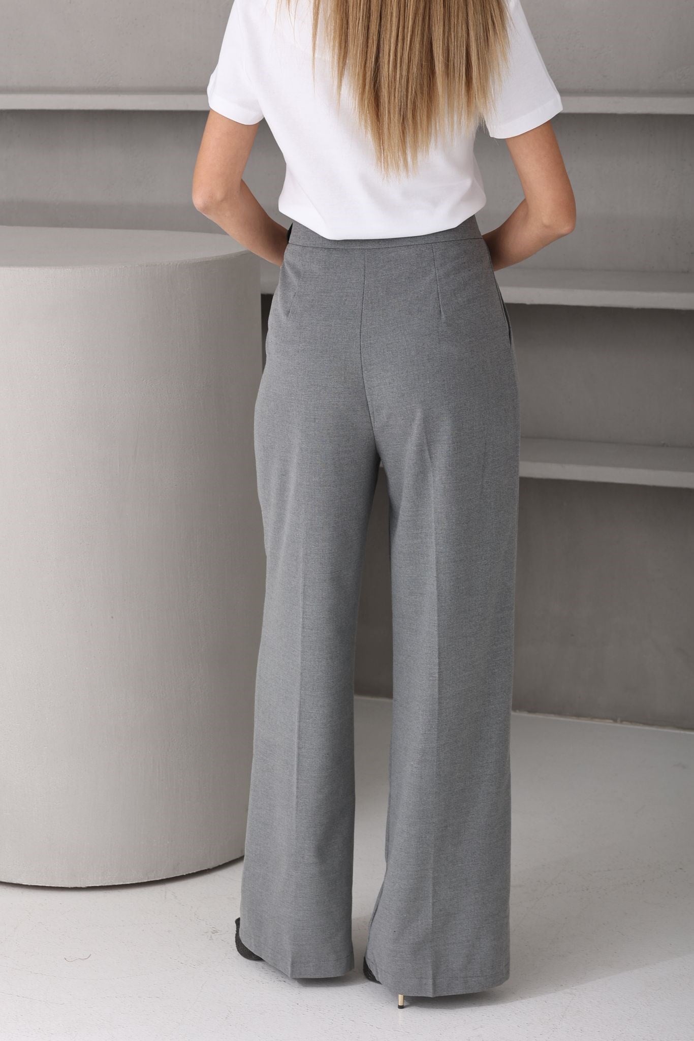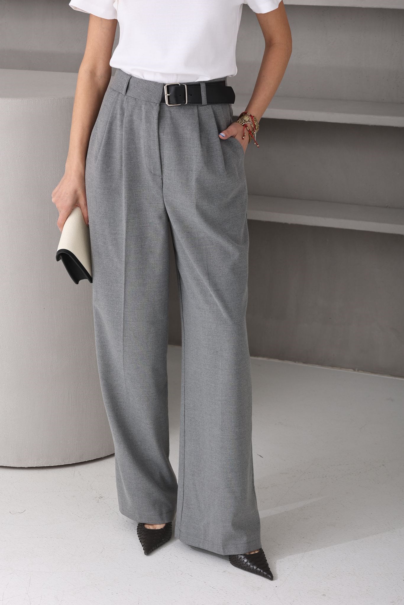 Kendinden Kemerli Gri Palazzo Pantolon (PNT001014)