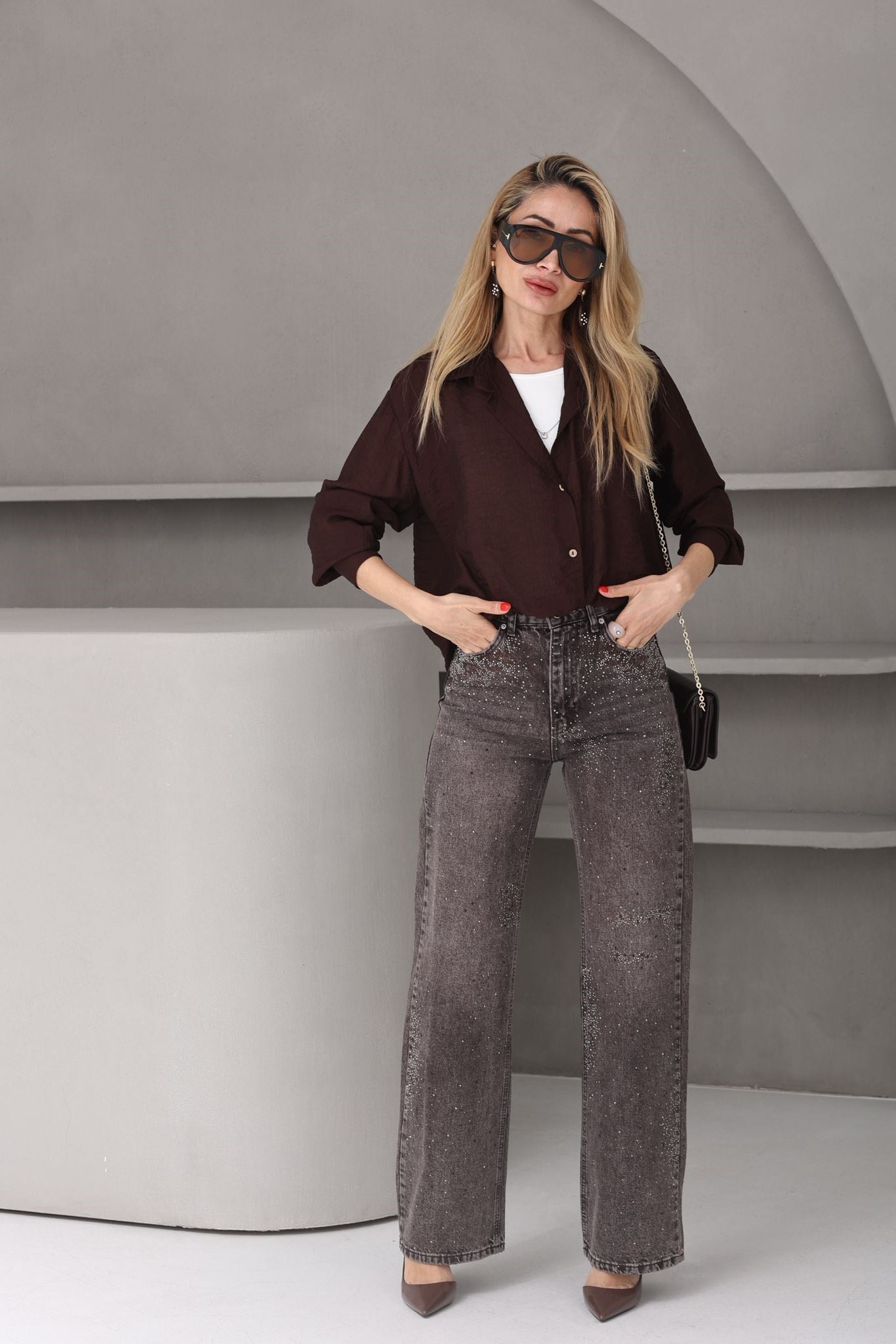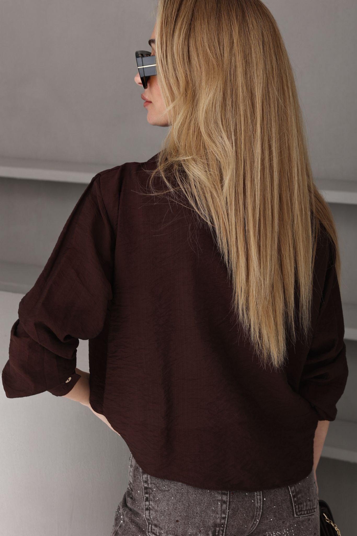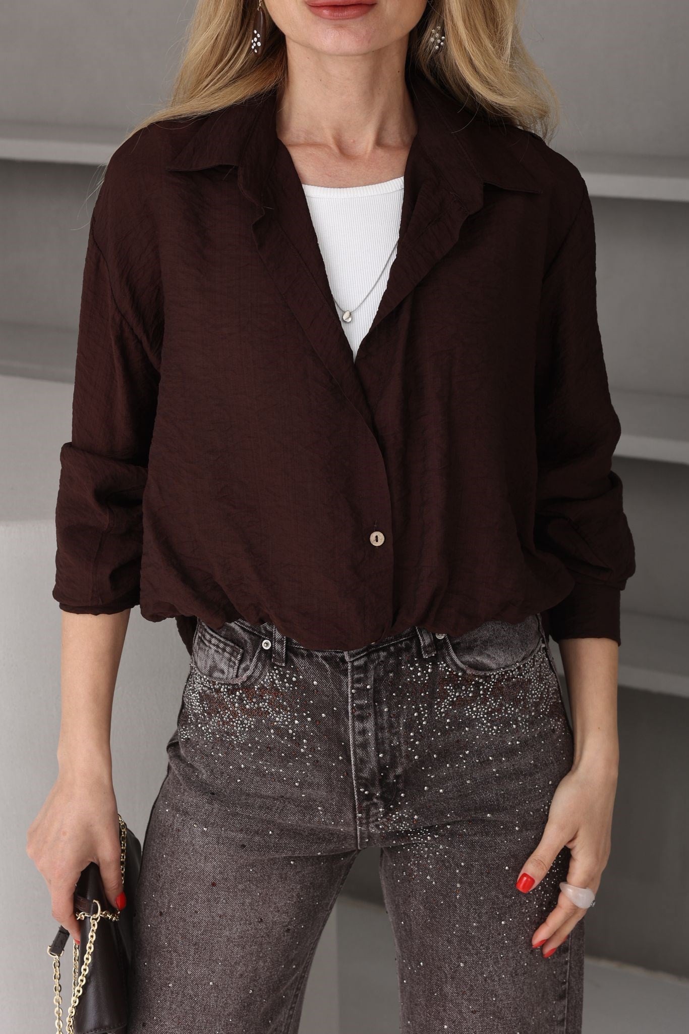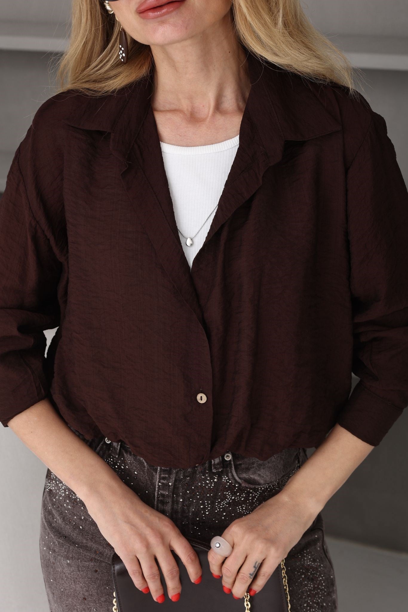 Kolyeli Penye Detay Kahve Gömlek (GML000738)