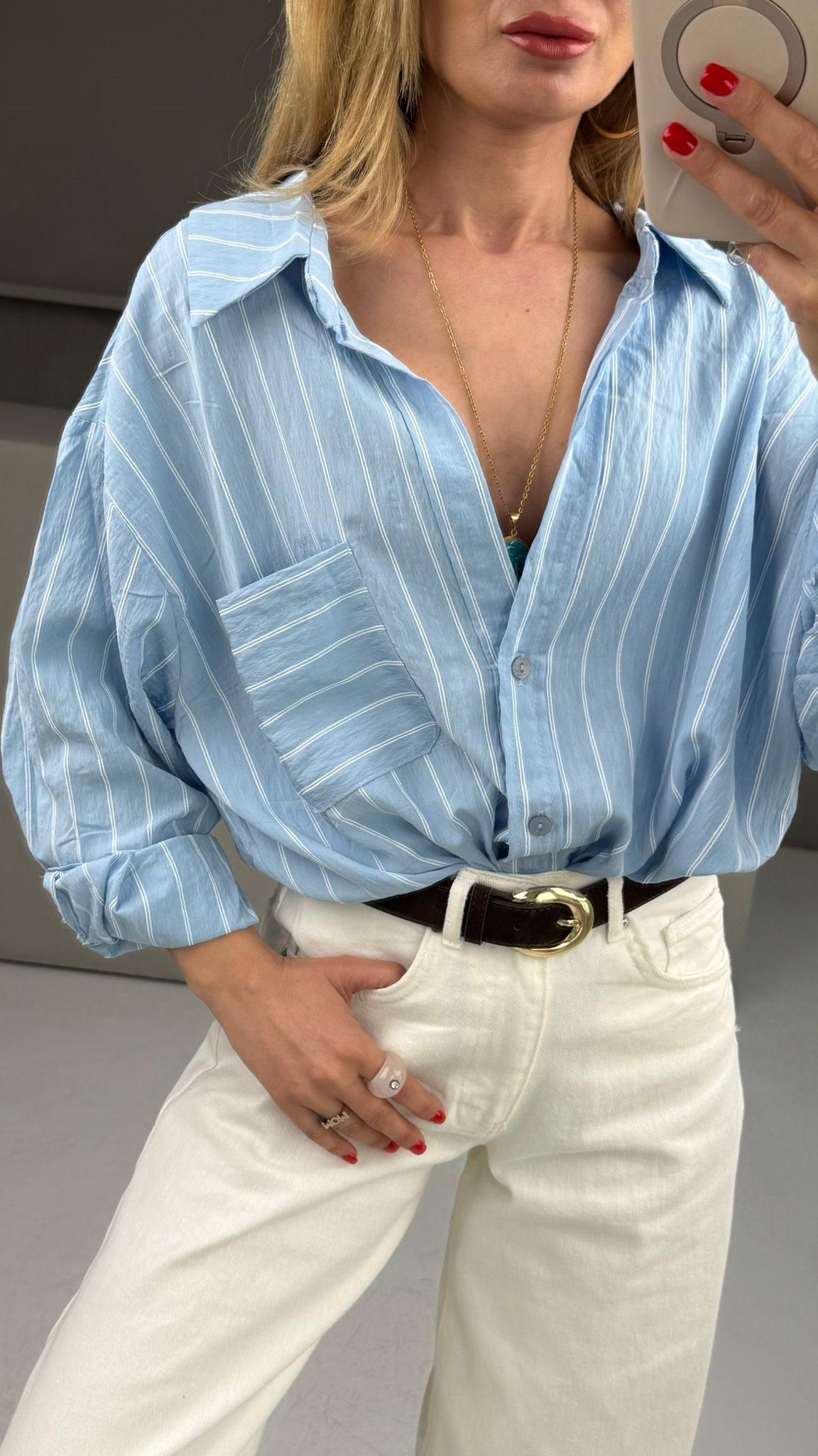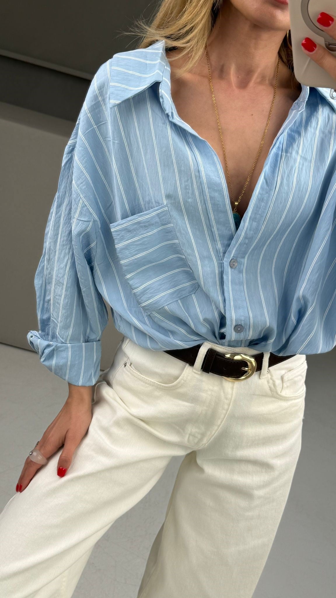 Mavi Çizgili Oversize Gömlek (GML000697)