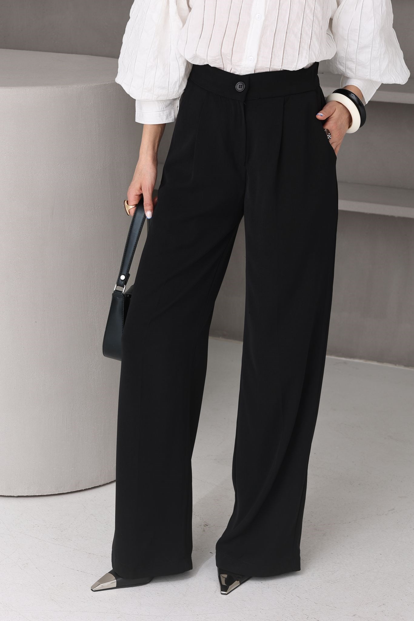 Siyah Krep Kumaş Palazzo (PNT001027)