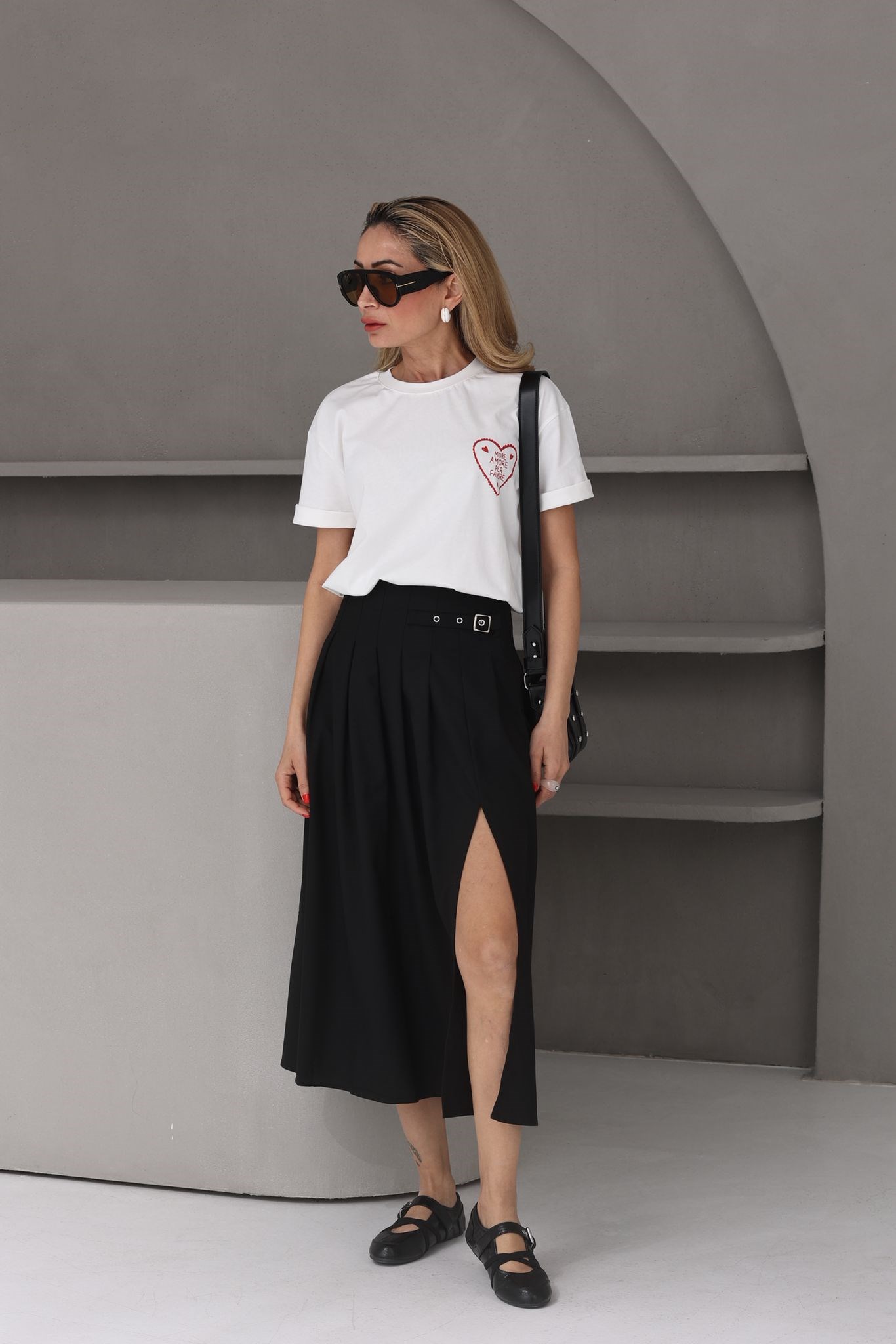 Siyah Pileli Derin Yırtmaçlı Etek (ETK000628)