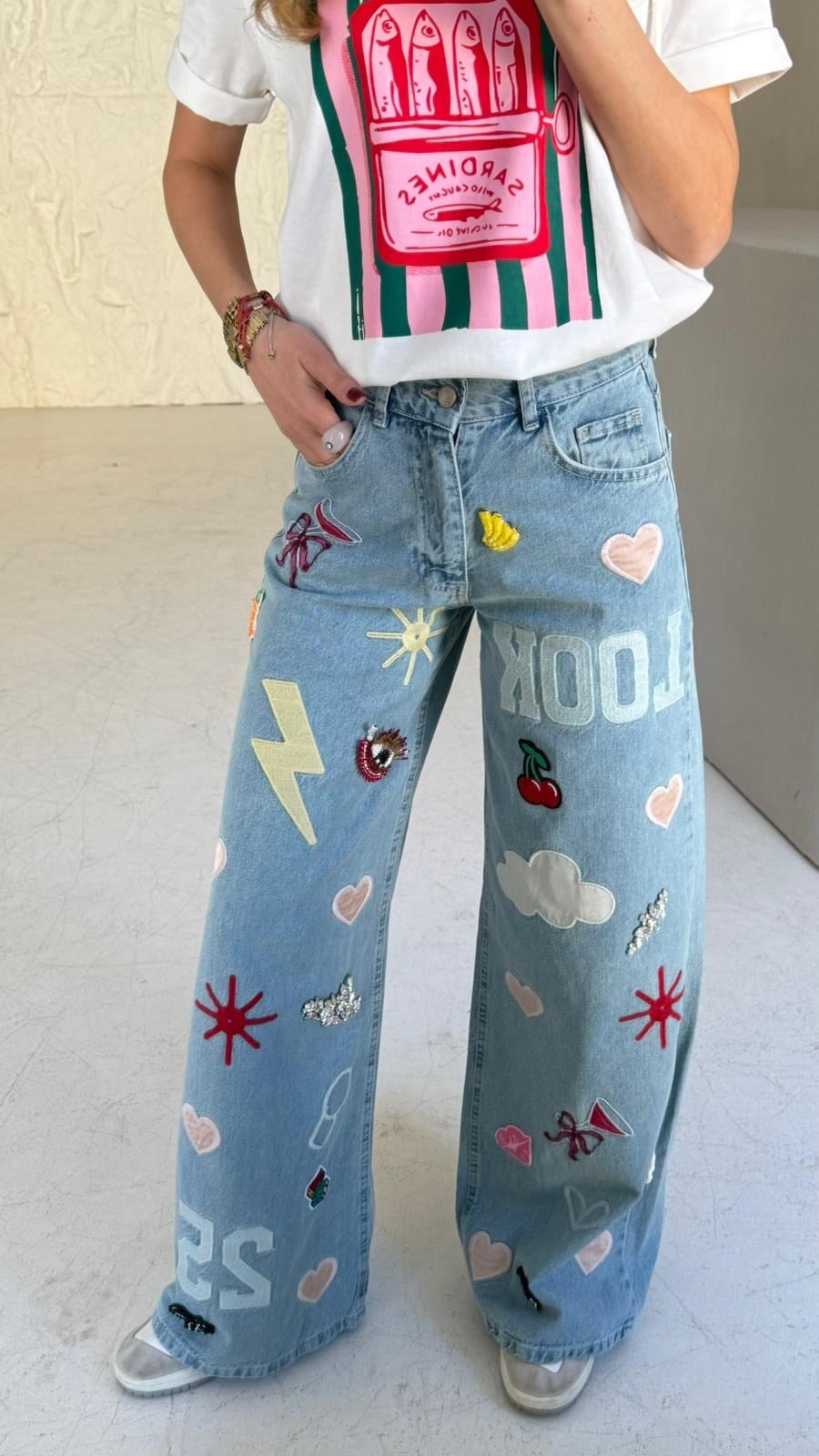 Taş İşli Nakışlı Palazzo Jean (4745) (JEN000558)